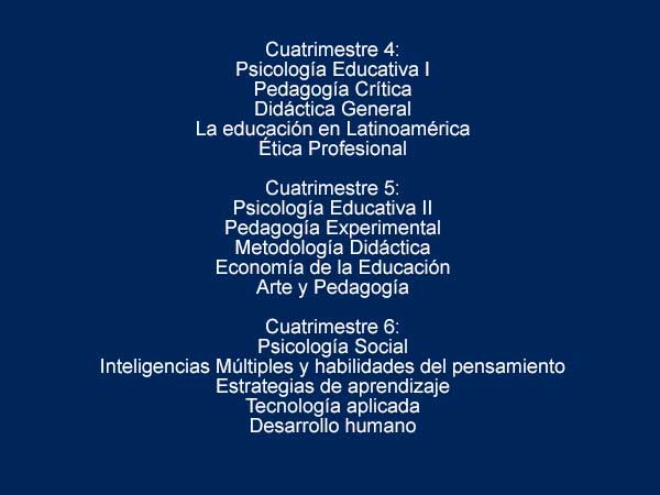 Docente, intervención socioeducativa, investigación, organización y gestión de centros educativos, politicas y legislación educativa, orientación escolar.